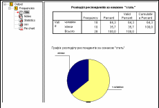 У результаті аналізу SPSS будує стандартні таблиці та подає інформацію щодо розподілу вибірки у графічній формі. Приклад вікна вихідних повідомлень наведено на рис.9.