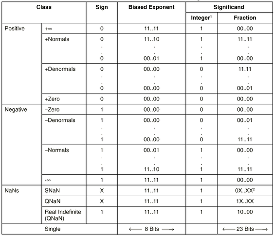 Таблица 2-2. Вещественные числа и кодирование NaN