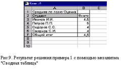 Рис.10. Результат решения примера 2 с помощью механизма "Промежуточные итоги"