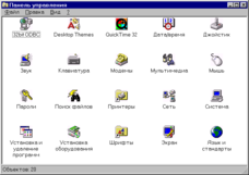 В среде Windows в папке Панель Управления (рис. 2.5) имеется целый ряд утилит для настройки устройств компьютера и системных приложений, в том числе и мультимедийных программ, например, настройка сетевых служб (пиктограмма Сеть), установка инастройка модема (пиктограмма Модемы).