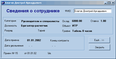 «Расчет» – предназначена для выполнения сложных периодических расчетов. Используется для расчета заработной платы любой сложности, расчетов по ценным бумагам и т.п.