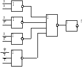 Если не учитывать коэффициент объединения по входу, то такая булева функция может быть реализована двухуровневой КС (рис. 8), являющейся оптимальным вариантом по быстродействию. Однако, если коэффициент объединения по входу І = 2, то предложенная реализация должна быть видоизменена. Преобразование КС в булевом базисе сводится к простому разделению переменных на элементах И и ИЛИ на основе ассоциативности операций конъюнкции и дизъюнкции. Преобразованная КС представлена на рис. 9. Как следует из рис.8, 9, выполненное преобразование приводит к необходимости использования четырехуровневой КС, что снижает быстродействие схемы. В общем случае, желательно проектировать КС минимальной глубины при выполнении требований на величину коэффициента І для используемого комплекта ИМС. Глубину КС можно уменьшить, если от минимальной ДНФ перейти к скобочной форме, вынося общие члены ДНФ за скобки.
