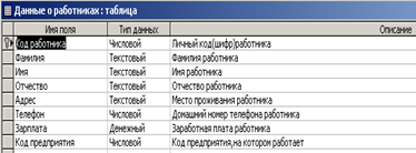 На рис. 1 показана таблица "Данные о работниках", созданная с помощью конструктора.