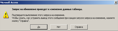 При нажатии на запрос на обновление, появляется предупреждение (почти такое же в запросе на удаление):