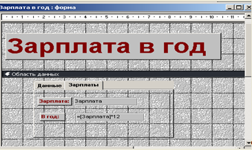 Рис. 3 Форма с вычисляемым полем (позволяет мне узнать зарплату каждого работника в год)