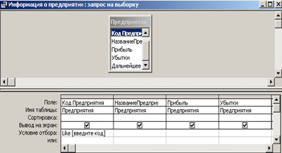 Запрос с параметром. При нажатии на значок запроса такого вида появляется окно: