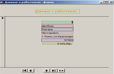 Рис. 4 Форма с кнопками перехода по записям (позволяет осуществить переход от одного работника к другому)