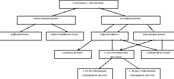 В зависимости от способа записи чисел и способа вычисления их количественного эквивалента системы счисления можно классифицировать следующим образом (рис. 1)
