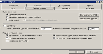 Большое количество связей может замедлить процесс открытия целевой рабочей книги. Кроме того, размеры рабочей книги с большим количеством внешних связей могут быть очень большими, так как Excel хранит в рабочей книге последнюю копию использованных в работе внешних данных, чтобы иметь возможность работать с рабочей книгой не обновляя ее связей. Если исходная рабочая книга всегда открывается вместе с целевой, или если вы всегда обновляете связи при открытии, или же если вы просто хотите сэкономить дисковое пространство, отключите сохранение копии внешних данных вместе с рабочей книгой. Для этого выберите команду Сервис, Параметры , в появившемся диалоговом окне раскройте вкладку Вычисления, снимите флажок Сохранять значения внешних связей и нажмите кнопку ОК (рис.20).