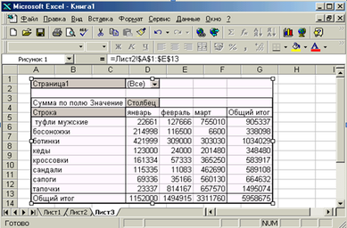 На новом рабочем листе сформировать рисунок для построенной в Примере 11 сводной таблицы.