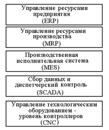 Управление в промышленности, как и в любых сложных системах, имеет иерархическую структуру. В общей структуре управления выделяют несколько иерархических уровней, показанных на рис. 3. Автоматизация управления на различных уровнях реализуется с помощью автоматизированных систем управления (АСУ).