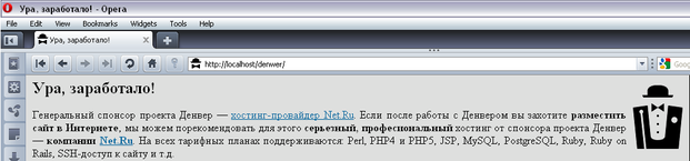 Если вы видите страницу с надписью “Ура, заработало!”, значит, все сделали правильно, и денвер работает