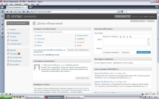 2.Администрирование сайта. Выход в конструктор в котором и осуществляется ведение блога.
