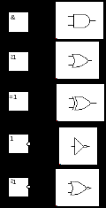 Існує декілька простих логічних функцій, які можна реалізувати відповідно з допомогою декількох логічних схем: