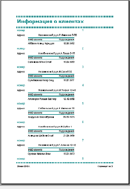 После следует создать отчёты на составленные запросы. Отчёты должны составляться по прайс листу по видам страховки, по бланку страхования и отчёт информации о клиентах. Отчёт создаётся следующим образом: