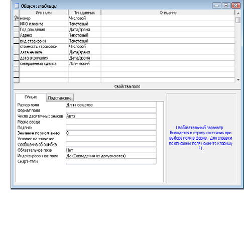 Для начала требуется создать таблицу, включающую все вышеуказанные данные в себя. Таблица создается с помощью “создание таблицы в режиме конструктора”: