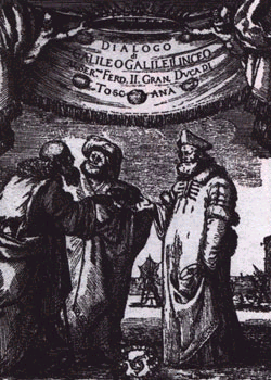 В 1632 г. во Флоренции была напечатана наиболее известная работа Галилея, послужившая поводом для процесса над ученым. Ее полное название - "Диалог Галилео Галилея Линчео, Экстраординарного Математика Пизанского университета и Главного Философа и Математика Светлейшего Великого Герцога Тосканского, где в четырех дневных беседах ведется обсуждение двух Основных Систем Мира, Птолемеевой и Коперниковой и предполагаются неокончательные философские и физические аргументы как с одной, так и с другой стороны".
