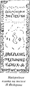 Его похоронили на кладбище при храме святого Онуфрия, храм принадлежал Львовскому православному братству. На могиле Федорова был поставлен надгробный камень с надписью: "Друкарь книг, пред тым невиданных". В этих словах содержится, быть может, наиболее точная характеристика великого дела, совершенного Иваном Федоровым.