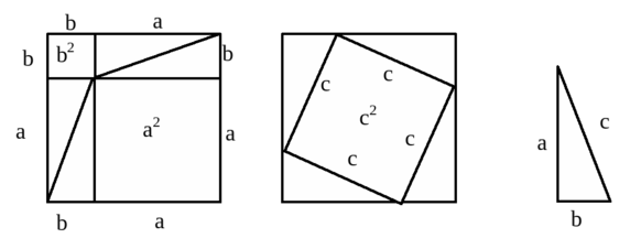 Теорема Пифагора. Квадрат, построенный на гипотенузе прямоугольного треугольника, равновелик сумме квадратов, построенных на его катетах.