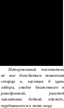 Когда преподобный, закончив свое дело, вышел из огорода, монахи сразу показали его поселянину со словами: «Вот тот, кого ты желал увидеть». Но крестьянин, отвернувшись от блаж енного, презрительно рассмеялся и сказал: «Я пришел посмотреть на пророка, а вы мне показываете сироту. Я путешествовал издалека, надеясь получить пользу, но вместо пользы встречаю только насмешки. Хотя я пришел в честную обитель, но не нашел полезного для себя: вы глумитесь надо мной. Считая меня за сумасшедшего. Я надеялся увидеть святого мужа Сергия в великой чести, славе и величии, ибо я так слышал о нем. Но у того, на кого вы мне указываете, я не вижу ни чести, ни славы, ни величия, ни красивой и многоценной одежды, ни служителей, которые бы предстояли ему. ни слуг, которые бы немедленно выполняли его приказы, ни множества рабов, которые бы прислуживали и воздавали честь своему господину,— этот человек имеет вид нищего, обездоленного сироты; поэтому я думаю, что он не тот, кого я ищу» — так говорил этот селянин-земледелец монахам. Поистине он был селянином-невеждой, ибо не видел внутренними очами, но смотрел только телесными глазами и не знал Священного Писания, в котором премудрый Сирах пишет: Человек смотрит на лицо, а Господь смотрит на сердце [1 Цар. 16. 7]. Этот крестьянин смотрел на внешнее, а не на внутреннее, и, увидев бедную одежду блаженного и его труды на огороде, он надсмеялся над добродетелью и нищетой старца, не веря, что это был тот человек, о котором он столько слышал. Не доверяя тому, что ему говорили братия, этот поселянин думал: «Мне рассказывали о величии, чести и славе Сергия, но почтенный и прославленный человек не может жить в такой нищете и скудости»,