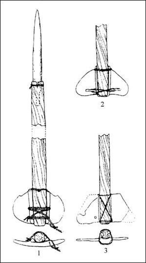Н. Н. Диков первым зафиксировал в закрытых комплексах Уэленского, Энмынытнынского и Чинийского могильников устойчивый комплекс «крылатый предмет» - древко - головка поворотного гарпуна, что подтвердило известную гипотезу H. Collins, о том, что «крылатые предметы» входили в гарнитуру метательного гарпуна в качестве утяжелителя и стабилизатора. Исследователь одновременно высказал предположение об их высокой степени сакральности и возможном использовании при соответствующих ритуалах [6, С. 130, 196–201]. Последнему есть аналогия в виде яшмовых наверший жезлов гекудзе раннего этапа периода Кофун в Японии, которые имели сходную с «крылатыми предметами» форму [9, С. 125–126]. Полагаю, что следует сделать вывод о полифункциональности и хэмудуских образцов. С одной стороны, можно признать корректной реконструкцию, проведенную китайскими исследователями (Рис.2.). С другой - нельзя не заметить зооморфности «бабочковидных изделий». Рассмотрение этого вопроса (прежде всего, анализ семантики образов бабочки и птицы) позволяет вернуться к вопросу о южных истоках древнеэскимосского искусства, о чем ранее писали С. И. Руденко (1947) и А. П. Окладников (1951). В содержательном плане птичьи сюжеты, распространенные в фольклоре народов Восточной Азии, находят свое самое раннее воплощение на археологических материалах районов Юго-Восточной и Восточной Азии. И особенно тяготеют к Тихоокеанскому побережью. Причем, культура хэмуду демонстрирует древнейшие их образцы. Что касается образа бабочки, то он должен восприниматься в плане общеазиатских представлений сакрализации насекомых. Многие параллели тут также связаны с неолитическими и более поздними культурами Восточной Азии, включая ее самые южные области [2]. В древнеэскимосском искусстве не только стиль, но и некоторые изображения прямо указывают на южное направление связей [4, С. 153].
