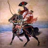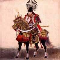 Боевой конь - маленькая и выносливая порода лошади - зачастую покрывался шкурами диких животных. Иногда его тело защищалось стёганой попоной или кольчатым панцирем. На груди коня укреплялись металлические пластины, соединённые шёлковыми шнурами; на голову надевалась кованая маска (умадзура), выполненная в виде головы быка, что должно было наводить ужас на врага. Такое снаряжение было характерно для периода правления Ода Набунага и Тоётоми Хидэёси. В комплект боевой амуниции коня (багу) входили также лакированные деревянное седло (кура), стремена (абуми), круглые удила (кан) и т.д.