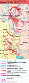 По настойчивому требованию французского командования, итальянского короля русские войска начали наступление 18 марта 1916 г. на Западном фронте на Двинском и Виленском направлениях.. Но из-за весенней распутицы наступление русских войск потерпело неудачу. Потери русской армии составили 78 тыс. чел, потери немцев - 30 тыс. чел. Наступление немецких войск под Верденом было приостановлено, но положение французской армии становилось все более безнадежным. Италия была на грани национальной катастрофы. Как всегда, русская Ставка приняла решение о немедленном наступлении для спасения союзников. Его разработал только что назначенный командующим Юго-Западным фронтом, гениальный стратег генерал А.А. Брусилов. Наступление русских войск в мае 1916 г. по имени командующего вошло в историю как Брусиловский прорыв.