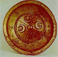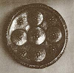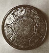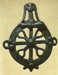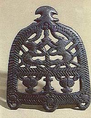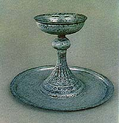 Большое место среди медно-чеканных изделий всех народностей Дагестана занимают круглые подносы различной величины. В чеканном орнаменте подносов преобладают копьевидные элементы, “крутящиеся” свастические выкружки — солярные мотивы, всевозможные розетки из лепестков и точек.
