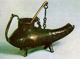 ногда конец цепочки венчала фигурка птички — изображение, восходящее к домусульманскому почитанию птицы как символа неба, света. Порой тулово светильника украшалось рельефным или гравированным растительным орнаментом.