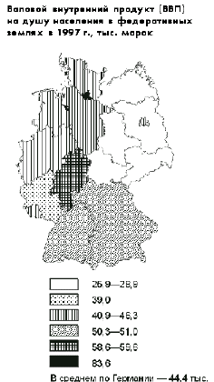 Средний валовой доход в расчете на одного наемного работника в восточных землях постепенно приближается к уровню западных земель, но все еще менее 3/4 от западногерманского. При этом сближаются они не постоянно (в 1997 г. — 74,4%, в 1998 г. — 73,8%). Рост доходов восточногерманских работников обеспечивается не только производством в самих восточных землях, но и перераспределением доходов между западными и восточными землями, зависимость которых от трансфертов сохраняется.