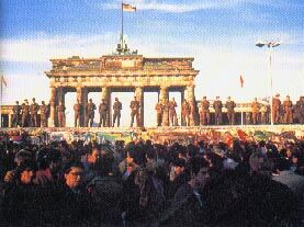в дни падения Берлинской стены зрители перед стеной у Брандербургских ворот