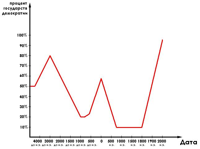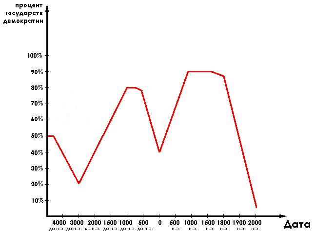 Изменение кол-ва демократических государств (4000 до н. э. – 2000 н. э.)