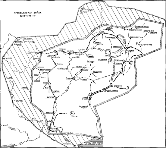 Причины восстания. Крестьянская война 1773—1775 гг. под предводительством Е. И. Пугачева была самым мощным вооруженным выступлением трудовых масс феодальной России против режима крепостнической эксплуатации и политического бесправия. Она охватила обширную территорию на юго-востоке страны (Оренбургскую, Сибирскую, Казанскую, Нижегородскую, Воронежскую, Астраханскую губернии), где проживало 2 млн. 900 тыс. жителей мужского пола, в своей массе состоящие из крестьян различных категорий и национальностей '. Восстание было следствием углубления кризисных ситуаций в социально-экономической жизни страны, сопровождавшихся усилением феодального и национального угнетения трудовых масс и обострением классовых отношений.