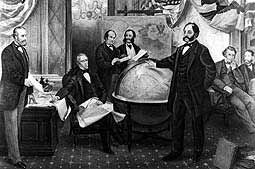Таким образом, Россия как бы избавилась в первую очередь от убыточной и постоянно беспокоящей ее проблемами компании. И еще — РАК тяготилась сознанием того, что дивидендов нет и они не предвидятся. Одни долги. Тем более что в это время на освоение новых земель в Приморье требовались крупные вложения. Но более всего на судьбу Русской Америки повлияла Крымская война (1853-56 гг.), которая привела к оскудению казны и в то же время показала незащищенность территорий в Тихом океане перед британским флотом. К 1866 году РАК задолжала министерству финансов 725 тыс. руб. В правительственных кругах начались разговоры о том, что продажа Русской Америки помогла бы пополнить казну и вместе с тем избавила бы от уязвимой и нерентабельной колонии, которая так или иначе отошла бы к Соединенным Штатам. К тому же продажей Аляски Россия приобрела бы союзника в борьбе против враждебной в то время Англии.