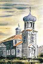 Русская православная церковь на Уналашке. Работа современного американского художника Сэма Мак-Клейна | ||||||||||||||||||||