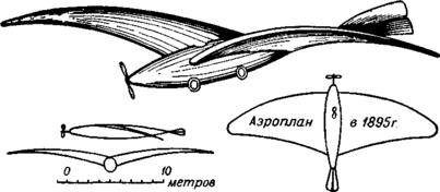 статье 1894 года «Аэроплан или птицеподобная (авиационная) летательная машина», опубликованной в журнале «Наука и жизнь» 8, дано описание, расчеты и чертежи моноплана со свободнонесущим, безрасчалочным крылом. В противоположность зарубежным изобретателям и конструкторам, разрабатывавшим в те годы аппараты с машущими крыльями, Циолковский указывал, что «подражание птице в техническом отношении весьма затруднительно вследствие сложности движения крыльев и хвоста, а также вследствие сложности устройства этих органов».