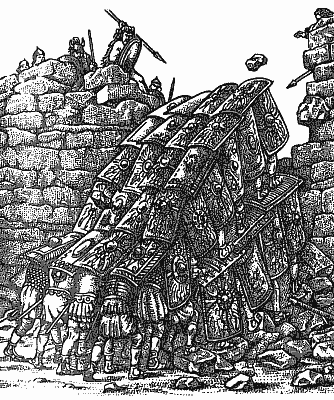 Рисунок 3 Римская центурия, выстроившись “черепахой” штурмует крепость.