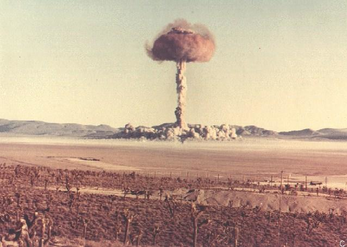 Взрыв первой в мире плутониевой бомбы на полигоне в Аламогордо.