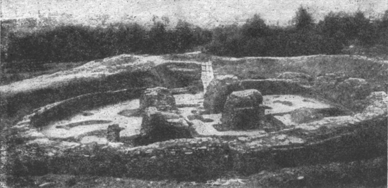 Руины ротонды лежали под слоем земли, смешанной со строительным мусором – известью и обломками кирпичей, как древних, так и новых. Этот слой был весь перемешен и пронизан могилами в основном XIX в. Кроме рядовых захоронений в деревянных гробах, отмечено наличие кирпичных склепов, сильно нарушивших столбы древнего здания.