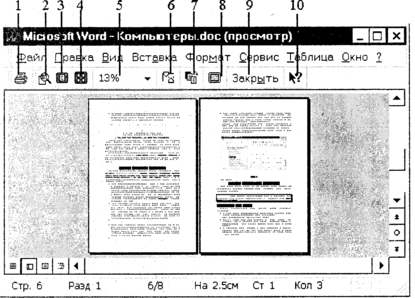 10. Контекстная Справка - позволяет получить справочную информацию по различным элементам окна предварительного просмотра.