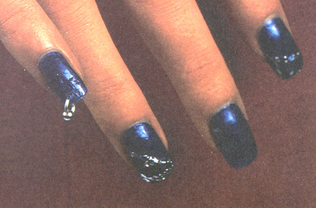 Для дизайна ногтей часто используют самоклеящиеся металлические полоски и плоские металлические рисунки. Их просто накладывают на не засохший лак для ногтей. После того, как лак застынет, его покрывают прозрачным закрепителем. Удалить потом картинку с ногтя можно будет с помощью жидкости для снятия лака (без ацетона).