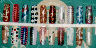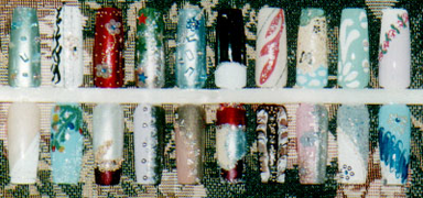 Для обучения этой технике вам может потребоваться всего лишь два часа. Не огорчайтесь, если рисунки не получатся сразу, запасайтесь терпением и ваяйте! Возьмите маленькую иголочку или зубочистку и несколько лаков различных цветов (чем больше их будет, тем лучше, но можно обойтись и тремя- четырьмя основными цветами: черным, белым, красным, зеленым). По своей консистенции лак не должен быть жидким.