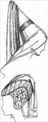 В середине XVI века красивой считалась прическа увеличенной формы. Для этого волосы взбивали тупеем. При необходимости добавляли фальшивые волосы. Для создания прически использовали различные приспособления: проволочный каркас, ленты, обручи.