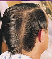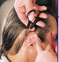 Секрет красивой стрижки бритвой. Лезвие бритвы должно быть особым образом подготовлено так, чтобы оно соскабливало волосы, а не срезало их. Перед стрижкой волосы необходимо смочить водой. Это способствует легкому скольжению бритвы, волосы не травмируются, стрижка получается плавная, без резких переходов. По окончании стрижки косо срезанные кончики волос накладываются одни на другие” подобно рыбной чешуе, и прическа легко принимает желаемую форму. Затем голову моют шампунем и ножницами подправляют неправильно лежащие пряди волос. Укладка волос. Закончив стрижку, приступают ко второму этапу — укладке волос в прическу. Эту операцию выполняют при помощи щетки и ручной сушилки. Благодаря сушке волос ручной сушилкой корни выпрямляются, и волосы укладываются щеткой в желаемых направлениях. Прическа сохраняется несколько дней. Стрижка бритвой и укладка при помощи щетки и ручной сушилки делают волосы податливыми, и из них можно сделать любую модную прическу. Очень немногие парикмахеры в совершенстве владеют этим искусством. Их по праву можно назвать “визажистами”. Действительно, правильно и со вкусом выполненные стрижка бритвой и укладка волос посредством щетки и сушилки могут изменить выражение лица, скрадывает его недостатки, например, слишком длинный или курносей нос, делают лоб выше или придают ему белее правильную форму, смягчают слишком резкие черты лица, делают лицо благороднее и моложе. Модная со вкусом выполненная прическа придает уверенность в себе и украшает жизнь. Процедуры, способствующие улучшению состояния и внешнего вида волос. В зависимости от состояния волос и желаемой модели прически парикмахер может предложить вам масляную ванну, массаж волосистой части головы, мытье головы шампунями, содержащими вещества, лечащие перхоть, себорею и сухость кожи волосистой части головы, окрашивание волос красками (при появлении седины) или оттеночным шампунем (выполняется перед ополаскиванием головы), обесцвечивание волос, легкую перманентную завивку, главным образом, передней части волосяного покрова головы. Завитые пряди помогут скрыть неукладывающиеся в прическу волосы, растущие на макушке (эти волосы коротко подстригаются, и темя закрывается завитыми прядями волос). Чтобы волосы блестели, на них наносят бриллиантин, в состав которого не входят жироподобные вещества. Прическа фиксируется легким лаком для волос. Массаж — здоровые волосы. Массаж играет большую роль при уходе как за жирной, так и за сухой кожей волосистой части головы. Под влиянием массажа улучшаются кровоснабжение сосудов волосяных сосочков, функция кожных желез, обмен веществ, общее состояние кожи и волос. Массаж — лучшее средство сохранения волос здоровыми и красивыми. Его необходимо выполнять каждый вечер в течение десяти минут, согласно инструкциям врача. Даже в наши дни большинство людей считают, что заботиться о своей внешности, делать ее эстетичной приличествует только женщинам и недостойно мужчин. Но, тем не менее, стремление правильно заботиться о своей внешности постепенно входит в сознание и быт мужчин. Во многих косметических салонах и институтах красоты открываются отделения для мужчин. Их услугами, пользуются мужчины всех возрастов, молодые и старше сорока лет. Сорокалетние стремятся задержать возрастные изменения кожи, 