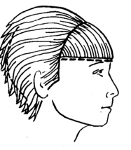 теменного участка. 2. Теменная часть волос должна быть оформлена в виде ровной площадки: