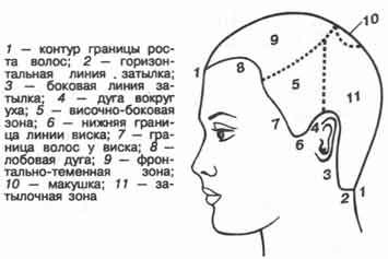 Перед тем, как начать стрижку, волосы разделяют на зоны: фронтально-теменную, височно-боковые и затылочную (рис. 1). У каждой стрижки может быть свое разделение на зоны с различными углами натяжения прядок, и делая срез ножницами параллельно обрабатываемому участку или под углом, вы можете получить множество вариантов стрижек.