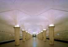 До сих пор вызывает восхищение станция “Маяковская”, вступившая в эксплуатацию в 1938 году. Опоры подземного зала выполнены в виде металлических колонн, облицованных гранитом и нержавеющей сталью. Уходящие ввысь ряды арок создают впечатление пространства (архитектор А. Душкин). В куполах помещены мозаичные панно по эскизам художника А. Дейнеки на тему “день советской страны”.