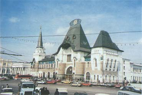 В церковном зодчестве распространилась тенденция башен, используемых в архитектуре северных городов. Появилось стремление к средневековым формам в архитектуре конторских построек (В. А. Покровский). “Национальная романтика” дала возможность к сообщению национальной географический выразительности железнодорожных вокзалов. Ярославский вокзал перестроен в 1902-1904 годах по проекту архитектора Шехтеля. Ему удалось сочетать черты модерна с образами, навеянными архитектурой сурового русского севера. Центральный вход вокзала напоминает ворота могучей былинной башни. Она увенчана шатром, похожим на юрту. В это необычное завершение входят другой шатёр и башня, созвучные кремлевским. Живописная композиция, самобытность художественного образа, богатая пластика, разнообразие строительных материалов - во всем проявились новые творческие принципы, которые внес в русскую архитектуру Ф. Шехтель.