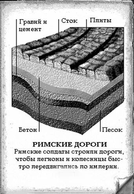 реки були прекрасними витонченими архітекторами. Римляни – грамотними інженерами. Вони будували прекрасні дороги, прямі, як стріла, по яких з великою швидкістю могли пересуватися війська. Одна з таких доріг – Аппієва, вимощена бетоном, гравієм, цементом, кам'яними плитами – була побудована в Римі в 4 столітті до нашої ери, але й дотепер вражає досконалістю інженерної думки. Утім, до кінця середньовіччя саме римські дороги були практично єдиними проїзними сухопутними шляхами Європи, правда, за багато століть без належного догляду вони прийшли в занепад.