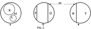 Если объемы двух понятий имеют общие элементы, понятия называются совместимыми. В противном случае они несовместимы. В нашем примере мы имеем дело с совместимыми понятиями, поэтому рассмотрим их более подробно. К совместимым понятиям относятся тождественные (их объемы полностью совпадают, см. рис. 1а), подчиненные (объем одного из них - видового - является частью объема другого - родового, рис. 1б), пересекающиеся (объемы этих понятий совпадают лишь частично, рис. 1в).
